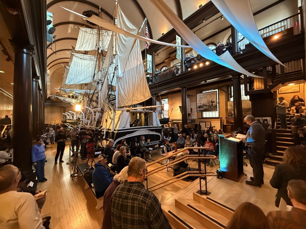 Welcome to the New Bedford Whaling Museum. It’s the weekend of January 3rd, 2026. Folks are gathered in the Bourne Building of the museum where you will find a half-sized duplicate of the whaling ship. Lagoda.
